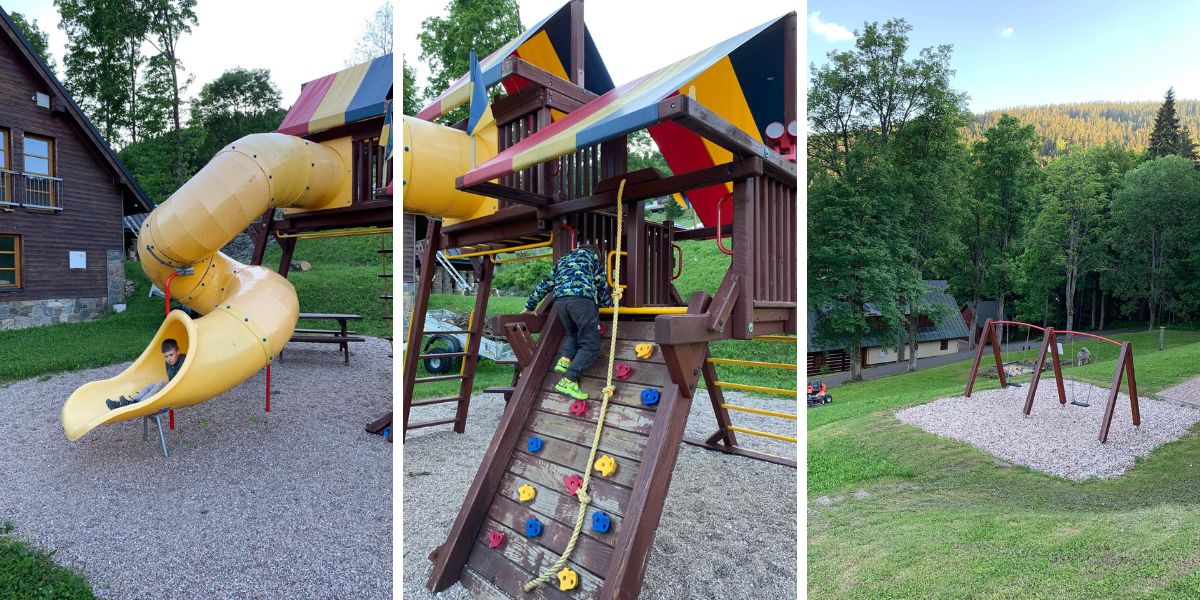 U bobové dráhy najdete také lanové centrum Monkey Park. Na překážky vysoko nad zemí mohou až osoby nad 140 cm, ale nízký lanový park je celoročně a bezplatně volně přístupný. Takže jsme potrénovali rovnováhu a za pár let třeba vyrazíme i na adrenalinový okruh o pár metrů výš.