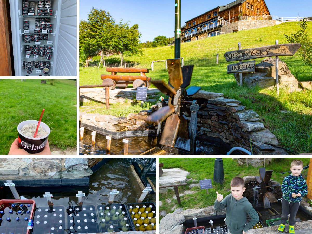 Už z loňska jsme věděli o samoobslužném limobaru, kde se lahve chladí v ledové horské vodě. Ale čekalo nás tu překvapení - limonády doplnila lednička s kelímky vynikající zmrzliny. Stačí si vybrat, peníze hodit do kasičky a zmrzlina je vaše.