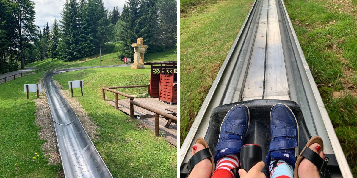 Během víkendu jsme stihli ještě bobovou dráhu. Děti od 8 let mohou už jezdit sami, mladší musí na bob s dospělým.