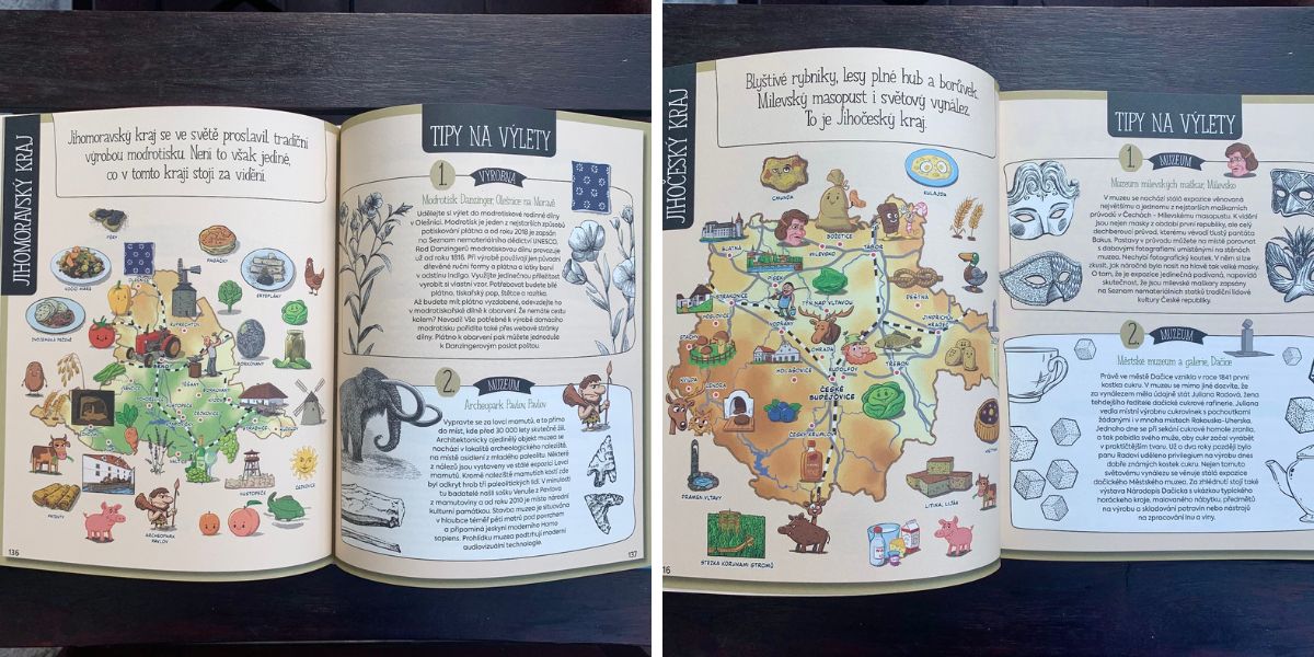 Najdete v ní 196 výletních tipů rozdělených podle krajů. Vybírejte z výletů do přírody, muzeí, kreativních dílen a dalších míst, které budou bavit děti i rodiče. Každý kraj má svou ilustrovanou mapku.