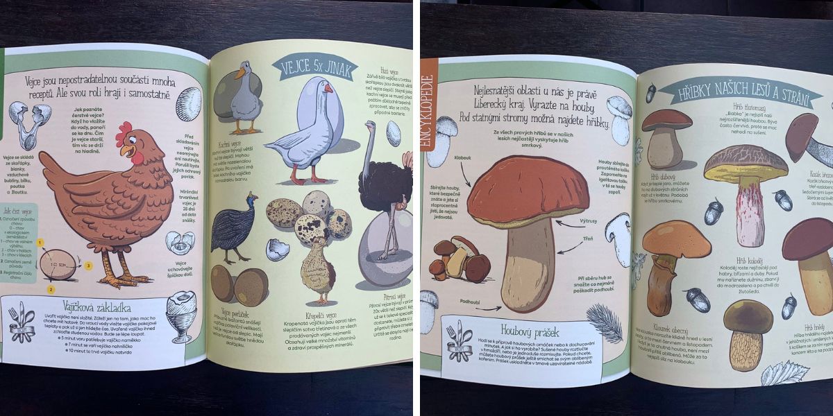 A u každého kraje se také dozvíte něco zajímavého v encyklopedické části, třeba o pečivu, vejcích či houbách.