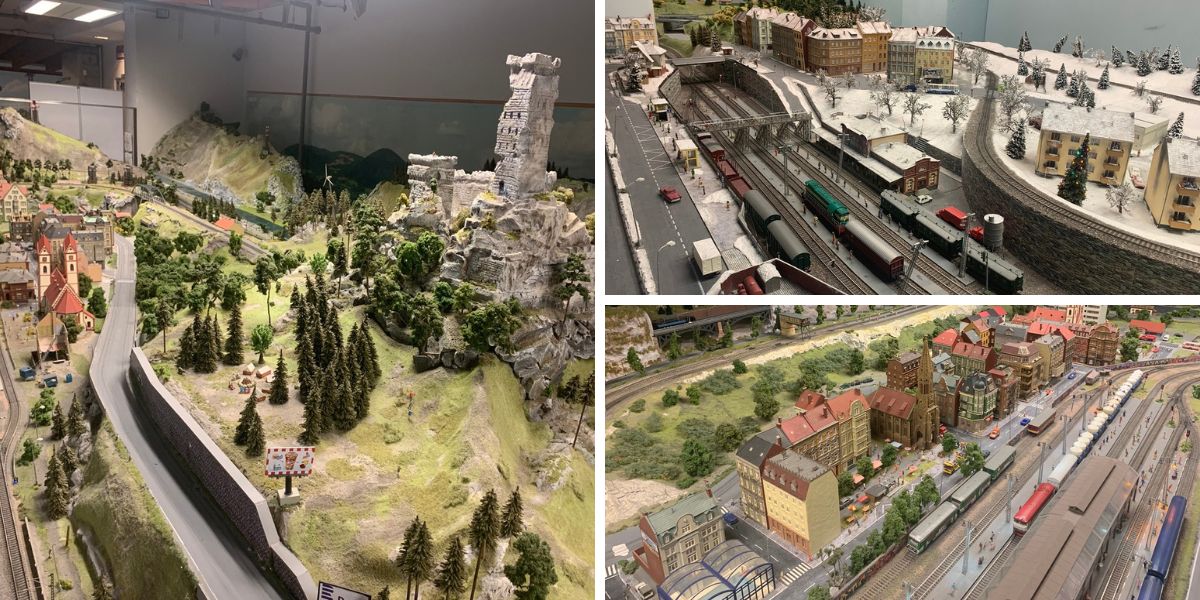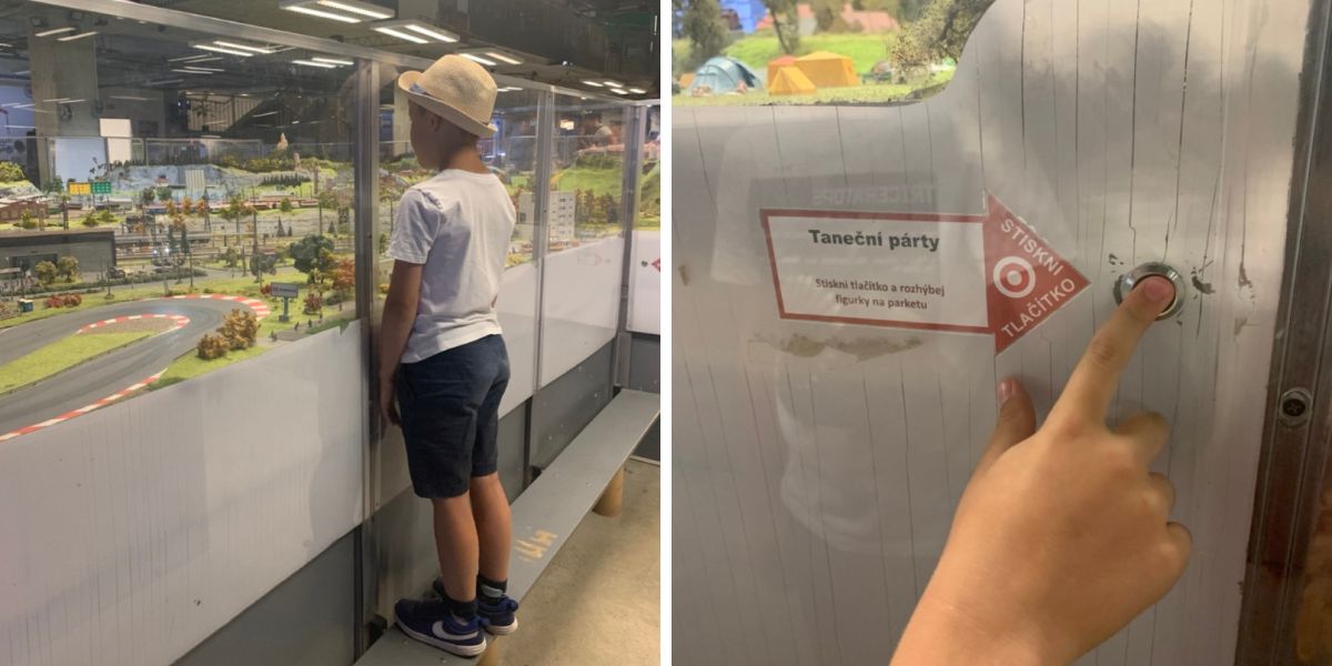 První tři menší modelová kolejiště uvidíte v 1. podlaží expozice, jejich souhrnná plocha je 115 m2. A o patro níže vás čeká hlavní lákadlo - obří modelové kolejiště s rozlohou více než 460 m2, které je největším ve střední Evropě. Model se skládá ze 6 krajů Česka (Karlovarský, Plzeňský, Ústecký, Liberecký, Středočeský a Hlavní město Praha), v budoucnu přibudou i další. Prozkoumejte, co se kde děje a na řadě míst můžete tlačítkem rozpohybovat děj či pustit zvuk.
