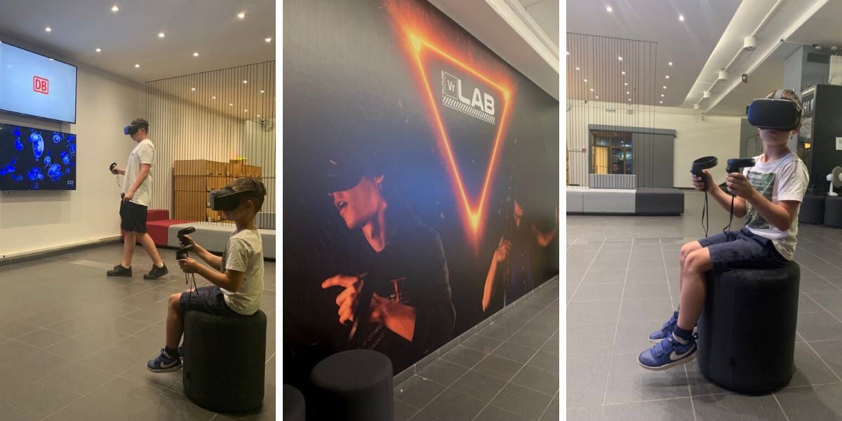 Posledním místem, které jsme tu navštívili, byla herna s virtuální realitou. Podle hodnocení sedmiletého syna vrchol celého výletu. Na výběr tu je několik her či projekcí, syn si zvolil projížďku horskou dráhou mezi dinosaury.
