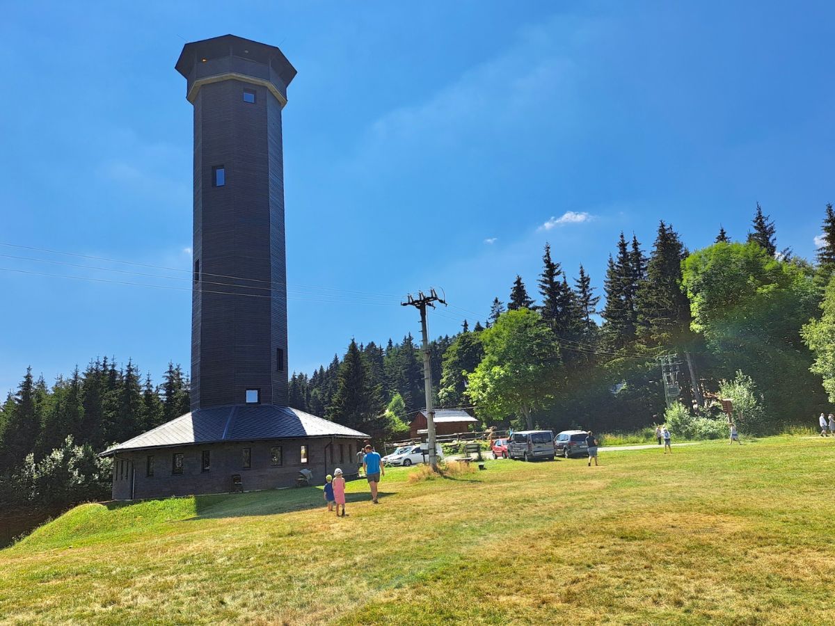 Chtěli jsme dětem dopřát také jeden výlet lanovkou. Zaparkovali jsme na parkovišti v obci Ramzová a sedačkovou lanovkou jsme se nechali vyvézt na první zastávku Čerňava, odtud jsme po turistické stezce pokračovali na vrchol hory Šerák. Kdo chce šetřit nohy, může se nechat lanovkou dopravit až na vrchol.