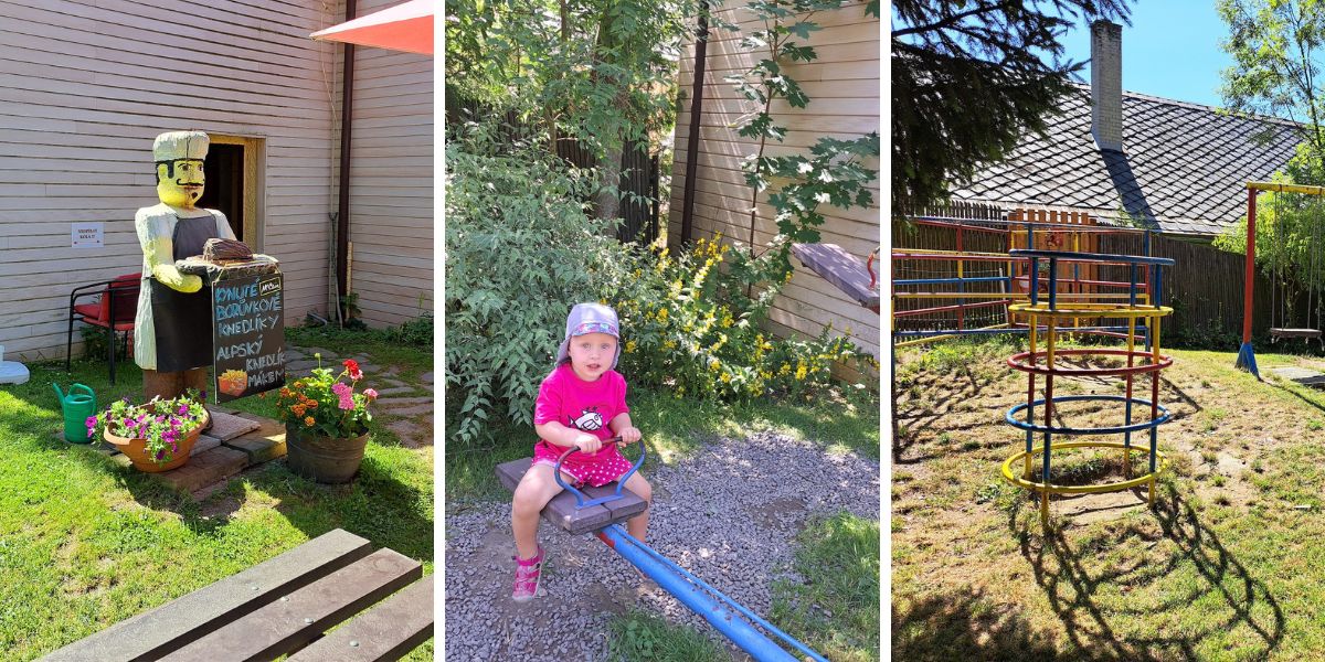 Přímo pod rozhlednou se pak nachází naprosto parádní nové dětské hřiště. Na děti tu čeká dřevěná pevnost, houpačky, lanové průlezky, skluzavky, domeček. Zábava určitě aspoň na hodinu. U rozhledny se také nachází bezva restaurace – Chata Na Vyhlídce. Otevřeno je v sezónu od středy do neděle a vaří tu opravdu výborně a za příznivé ceny.