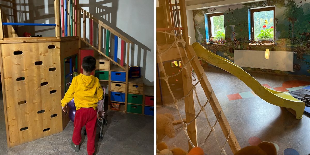 Hned po příchodu do penzionu nás zaujala skvěle vybavená herna. Tak ji Tomík rovnou důkladně otestoval.