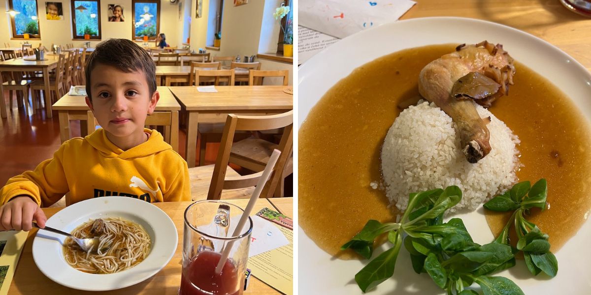 V každém pokoji i apartmánu najdete kuchyňku, ale v hlavní zimní i letní sezóně a ve vybrané víkendy je možnost polopenze. A my měli právě polopenzi, takže nás žádné vaření nečekalo. Snídaně jsou formou bufetu s velkým výběrem a u večeře salátový bar, polévka, výběr ze 2 hlavních jídel a dezert. První večer jsme měli výborné kuře s rýží a druhý jsme si pochutnali na těstovinách.