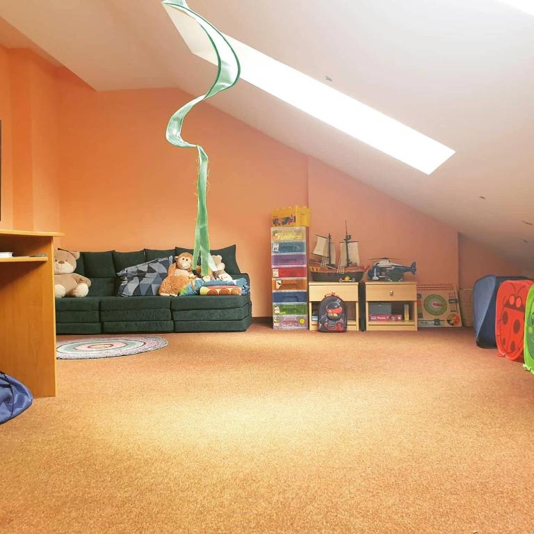 Představuje ideální útočiště pro rodiče s dětmi díky svému umístění v panenské přírodě Krušných hor. Pro nejmenší návštěvníky je v areálu připraven vnitřní dětský koutek a zahrada s hracími prvky, velkou trampolínou i sezónním bazénem. Prostorné rodinné pokoje jsou prakticky vybaveny vlastní lednicí a rychlovarnou konvicí pro maximální pohodlí během pobytu. Poloha objektu přímo vybízí k bezpečným výletům do okolních lesů, na blízké cyklostezky nebo k návštěvě nedalekých Karlových Varů. Hosté moh...
