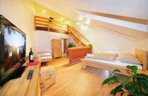 Ideální zázemí pro rodinnou dovolenou díky ubytování v prostorných mezonetových pokojích s kapacitou až čtyři lůžka a možností zapůjčení dětské postýlky. Děti se mohou zabavit na venkovním hřišti s trampolínou a řadou atrakcí, zatímco rodiče ocení přilehlý sportovní areál nabízející tenis, plážový volejbal či fotbal. Lokalita je strategickým výchozím bodem pro výlety do ZOO Dvůr Králové, Krkonoš nebo na blízké městské koupaliště. Přímo u hotelu začíná šestikilometrová cyklostezka vhodná pro cykl...